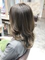バレイヤージュ風ハイライトカラー♪毛先に向かって明るくなるバレイヤージュ風になるように入れたハイライトカラーです!ダメージをなるべく最小限にするために傷みやすい毛先全体をブリーチしなくてOK(^^)