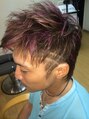 サイドをツーブロックにし、バックは眺めに残し、全体にハイライトを入れ、その上からパープルのカラーを入れました