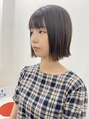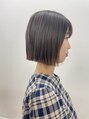 まっすぐなカットで整えてパツっとしたラインを残し、ミニボブの外ハネスタイル。艶髪になるトリートメントでツルツルサラサラヘア。ベタつかないtrackジェルは外ハネスタイルにおすすめです。