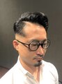 スキンフェード×七三分け現代版アレンジスタイル。スキン部分の高さや、フェードの幅でイメージを変えることができます。今回はフェード幅を短くして大胆なシルエットを作り、オリジナルな個性を出しました。前髪をしっかり立ち上げるのがお洒落上級です。