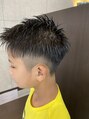 サイドは4ミリでツーブロック,バックは6ミリの刈り上げです。トップはショートレイヤーを入れ,シッカリと毛量調整をしております!
