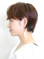 全体のコンパクトなフォルムと無造作カールのコントラストがおしゃれなショートスタイル。ふんわりカールでショートでも大人可愛い印象に。パーマをかければ、トップのボリュームが気になる方にもおすすめです。仕上げはバームで束感を強調して。