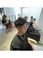 サイドとバックを大胆に刈り込んで、トップは職場で怒られないくらいに調整した絶妙パーマ!スラムダンクの宮城リョータ風のスタイルを前に流して仕上げました!