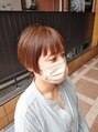 気になる白髪をハイライトで馴染ませながら、柔らかな栗色に♪コンパクトなショートとの相性も◎