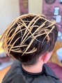 派手過ぎず変化のあるスタイル作りのためにメッシュハイライトをチョイス!『青味のやや強いブルーグレー』のオーダーでしたからコバルトブルーで深みのある色味を表現しました。また、ハイライトの数もやや多めに入れることでしっかりと分かる表現に。