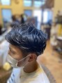 まわりはスッキリのツーブロックで、トップにゆるめのパーマで毛流れ+動きをだす。オンでもオフでもきまるおすすめメンズスタイル!