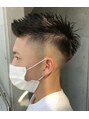 スッキリとしたフェード風の刈り上げに、毛先をツンツンに遊ばせてます。スタイリング剤はジェルワックスでツヤ感を出してますが、ワックスでもカッコよく決まるスタイルです。