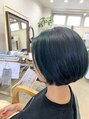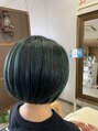 - あごレングスのボブにカットして、ハイライトしてから、グリーンに毛先を染めました。