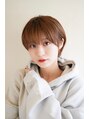 耳にかけた時にコンパクトに収まるショートです☆前髪は目にかかるくらいのやや長め設定です♪目尻にかけて少し長くラウンドするようにカットすることで可愛さをプラスしています♪カラーは自然なベージュブラウンでナチュラルな明るさを出しています☆