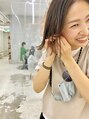 ギリギリくくれるくらいの長さのぱっつんボブ。内巻きにならないように真っ直ぐ感をキープしてるのと、ハイライトブリーチをいれて立体感とくすみ感をだしたラベンダーアッシュカラーで、重くならないカラーデザインがポイントです。
