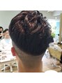 今や定番になりつつあるフェードスタイルに刈り上げの薄さを変えてエッジの効いたスタイルに仕上げてます。