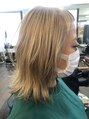 ブリーチ2回のブロンドベージュカラーくすみも強すぎない、赤みをしっかり抑え外国人風の透明感に。ケアブリーチでダメージを抑えるのことで毛先まで指通りはgood。毛先はパツっと切りっぱなしだけどしっかり軽いミディアムヘアです。