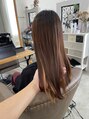 シルクストレート後のシルクカラー♪ストレートで髪の毛のベースを整えて、髪質改善用のトリートメントでさらに内部から補給して、より艶髪にしていきます☆