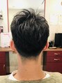 周りを3ミリで刈り上げてトップを根元からしっかり梳いて軽めに仕上げました。