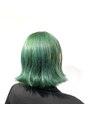 ブリーチカラーで全体くすんだグリーンに!!!ビビッドで彩やかすぎないので全体グリーンでもかわいいです!!!