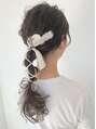 ゆるい雰囲気とナチュラルな透明感が素敵なヘアセットブライダルということでホワイトを基調にローポニーで紐でアレンジ大人綺麗なシンプルなのに注目度NO.1の王道スタイルに仕上げました!ミディアムでも再現可能です!