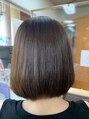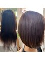 ロングヘア、ご自分で毛先セルフセニングカットされていました。今回、縮毛矯正と前下がりボブにイメチェンさせていただきましたら♪普段セルフカットされてる方もご来店大歓迎です!