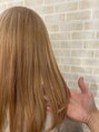 1ブリーチして大人気のミルクティーシアベージュ☆根本の黒かった部分も頭皮と髪のダメージをしっかりと守りながら施術していきます。