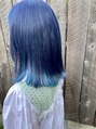 周りと差がつく個性派デザインカラー!2色の青を使い濃いネイビーと明るい水色でコントラストをつけて、目立つこと間違いなし!ブリーチ2回必須です。