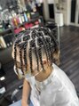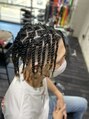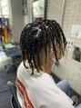 地毛を以前特殊パーマをあてて、ほぐれてアフロっぽくなった状態で地毛のみのタイトロープスタイルです。