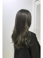 毛先重ため表面レイヤー動きを出せるスタイル☆毛先1回転半カールでゆるいラフなイメージ。秋冬オススメのアドミオカラーの透明感あるアッシュブラウンのグラデーション。