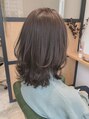 赤みを消した柔らかいカラーにしました。毛先の方は外ハネにして、トップは内巻きでミディアムヘアの外ハネです。