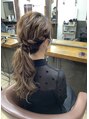 全体的にルーズに仕上げ、低めのポニーテールにアレンジしたシンプルだけどかわいいスタイルです♪♪