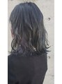 表面は室内で見ると黒っぽくネイビーブルーで暗く☆イヤリングカラーをしていた部分はパープルで色味をしっかりいれました♪※イヤリングカラーのところはブリーチを何度かしています。