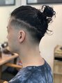 ツーブロックのミディアムスタイルにツイストスパイラルパーマをミックス!スタイリングもワックスを揉みこんで自然乾燥させるだけなので簡単に決まります!スキンフェードのツーブロックなので、マンバンスタイルにも相性◎です!