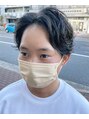 メンズライクなショートパーマです!センター分けの前髪はセットも簡単なのですごくおすすめです(^^)カラーはネイビーアッシュで暗い中にも透明感を◎