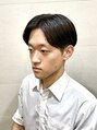 サイドはツーブロック、後ろは刈り上げでスッキリ!耳にかからない長さでカットしつつも前髪に向かって前下がりにカットしてるので、前髪を流さずに下ろしてもカッコいいです。スタイリング剤は柔らかめのワックスやバームがおすすめ!
