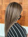 太めのハイライトをたくさんいれたスタイル。ブリーチ2回。