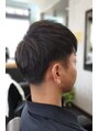 骨格に合うようにカット。耳周りや後ろをスッキリ刈り、トップには束感を出しました。ドライヤーで乾かしたらだけです。