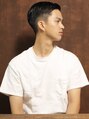 アウトラインを刈り上げた七三ショートスタイル。パートラインを目の外側ぐらいで決めて、ピッチリ七三に分け、トップをやや長めに残す事で毛流れができやすくしています。