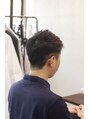 刈り上げスタイルです。アンダーはスッキリと刈り上げて、オーバーはつなげてカットしています。お客様の髪質は直毛で馴染みずらいので、そこはしっかりと馴染ませています。毛量もスッキリと。襟足の処理はこだわってキレイを意識しています。
