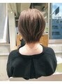 丸みのあるショートボブベース。しっかり量感を取って扱いやすく。ブリーチ一回に外国人風ミルクティーグレージュが大人気