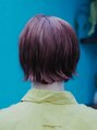 今年の夏は、アプリコットカラーがおすすめです!!重めの前髪に切りっぱなしのショートボブスタイルと明るめアプリコットカラーが相性バッチリ!少し個性的な印象にもなります。前髪を少し広めに作るのがポイントです!