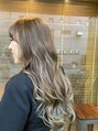 表面にハイライトと毛先のブリーチ一回で可能なスタイルです。チャコールグレーで髪の赤味を消して透け感重視に。お客様の髪のコンディションを見極めて施術致します。3枚目は屋内でのバージョンで色の見え方も変わって見えます。