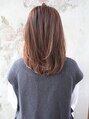 アイロン苦手、そんな方にもさらっとブローで簡単に完成★レイヤーカットでふわっとナチュラルにひし形シルエットに。小顔抜群の顔周りの髪の毛も一人一人に合わせてこだわってカット。艶チョコレートブラウン。時短で素敵な大人ヘアは【高橋】にお任せ!