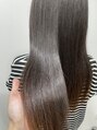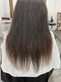 ゆっくり優しく浸透させる技術で縮毛矯正のダメージ軽減。毛先のスカスカをカットで重めにし、縮毛矯正は根元から中間まではしっかり矯正毛先はコテ巻きしやすいよう緩めに矯正。