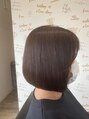 バッサリ前下がりボブつるんとボブもおすすめですがアイロンで毛先外ハネにしたり、内巻きにしたりその日の気分で変えてみるのもいいですね!顔周りにレイヤー入れてるので軽さもでて小顔効果アップ☆