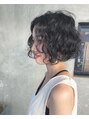 カットラインはボブラインに細かめのミックス巻きコスメパーマ。カラーなナチュラル黒髪。