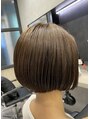 ミニボブにグレージュカラーで染めました。オイルをつけてかるくとかすと艶感のあるミニボブに。毛量の多い方でも毛量調整をすればミニボブになります。