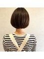 裾を削り過ぎず、やわらかい丸みが印象的で可愛いボブです。白髪も染めながら透明感のあるやわらかいカラーに仕上げてます。