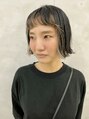 クセを活かしたフレーミングカラーのぱっつんボブ。毛先をフリンジのようにしたフレーミングカラーはベージュ系カラー。ベースは黒髪にしてモードっぽくしました。