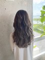 ハイライト、バレイヤージュ履歴のあるお客様にミルクティーカラーを重ねました。根元から毛先まで同じカラー剤ですがブリーチの部分もありグラデーションスタイルに仕上がりました。