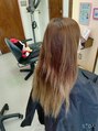 ベースのカラーはブルーブラックです。ターコイズブルーのハイライトをエクステで60グラム付けました。同じブルー系なのでバランスがいいです。同系色は鉄板ですね。