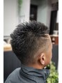 トップはくせ毛をいかしたカット。サイドとバックは1ミリからの刈り上げです。