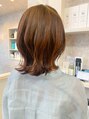 透明感バッチリの秋っぽいオレンジカラーです。赤み多めのツヤツヤカラーに仕上がりました。肌なじみもよくいつもとは違う感じにチャレンジしやすいのでオススメです。ぱつんとカットに外ハネ仕上げでくびれを作るとスッキリ軽く見えます。