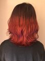 グラデーションにブリーチをして、かっこ可愛いパキッとレッドをON♪境目がバツっとならない様にこだわって丁寧にブリーチしました◎色が落ちてきたら別のカラーも楽しめます♪